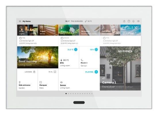 Ob Smart Home, Hotel oder Bürogebäude – das schlanke 10-Zoll-Panel mit kapazitivem IPS-Touchscreen mit haptischem Feedback ermöglicht die optimale Kontrolle und Steuerung in einem benutzerfreundlichen Gerät. Das innovative Busch-SmartTouch® 10” verwaltet und überwacht zuverlässig sämtliche Funktionen – von Beleuchtung und Beschattung oder Szenen- und Temperatursteuerung bis hin zu IP-Kameras und Online-Wetterdaten.