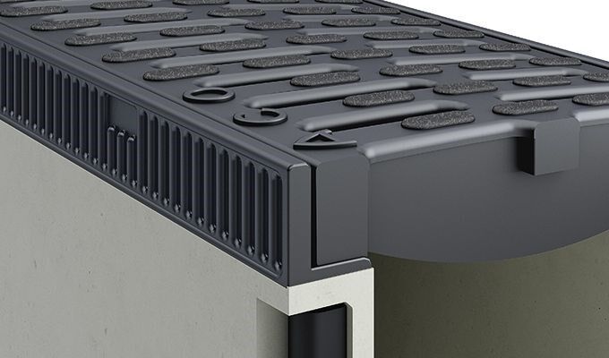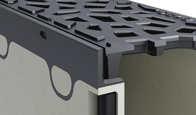 Bei der neuen Linie bestehen Kantenschutz und Drainlock Rost aus dem selben Material - wahlweise Stahl, Gusseisen oder Kunststoff.