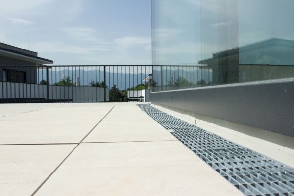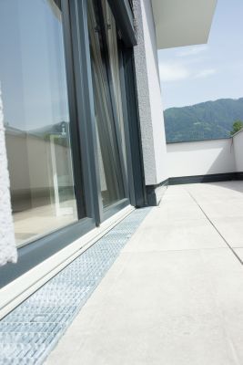 Besonders beim sensiblen Wand-, Tür- und Fensteranschlussbereich von Terrassen, Dachgärten und Balkonen muss immer sichergestellt sein, dass von außen keine Feuchtigkeit ins Gebäude eindringen kann. Durch den normgerechten hydraulischen Rinnenquerschnitt sowie die daran angeschlossenen Stichkanäle der ACO Fassadenrinnen wird das kontrollierte Auffangen und schnelle Ableiten von Schlagregen gewährleistet. Durch unterschiedliche Rostausführungen sind verschiedene Designvarianten zu erreichen. ACO Fassadenrinnen passen sich sowohl in Edelstahl als auch in der Ausführung Stahl verzinkt allen architektonisch anspruchsvollen Bauvorhaben an.