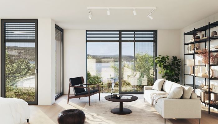 Sonnenschutz: Ein Raffstore für präzise Lichtlenkung, ein Rollladen zur optimalen Raumverdunklung oder ein textiler Zipscreen für individuelle Farbgestaltung.