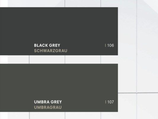 Wir erweitern unser Farbprogramm um 5 zusätzliche Grautöne. Sie entsprechen dem RAL-Farbschema und können somit farbgetreu mit Materialien von beispielsweise Tür- und Fensterrahmen sowie Garagentoren oder Balkonbrüstungen kombiniert werden.
