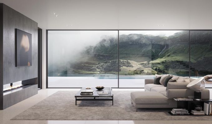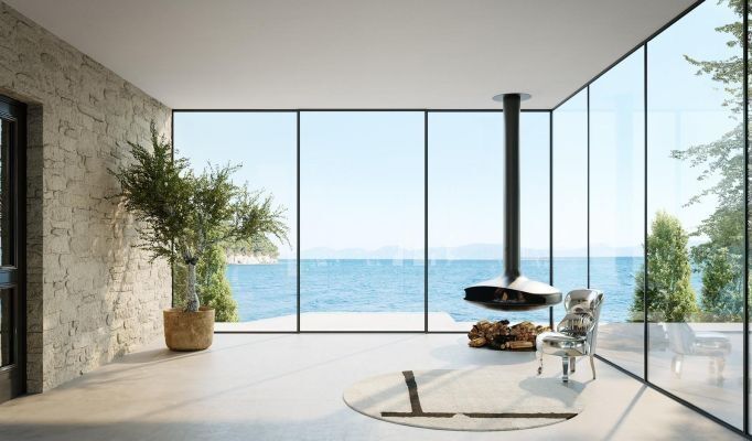 Profilbreiten von 25mm und völlig rahmenlose Boden, Wand- & Deckenanschlüsse ermöglichen einen Ausblick ohne Kompromisse.