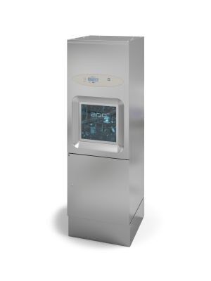Der Typhoon ist für seine View-in-Process (VIP) Glastür-Funktion bekannt, die es ermöglicht, den Verlauf jederzeit zu prüfen. Die automatische Schiebetür mit dem eingebauten IR-Sensor unterstützt einen berührungslosen Betrieb – halten Sie einfach die Hand vor das Display, um sie zu öffnen und zu schließen. Der Typhoon verfügt außerdem über eine automatische rotierende Drehhalterung. Nach dem Verschließen der Tür dreht sich die Halterung um 150°, so dass die Behälter automatisch geleert werden. Während des Zyklus' desinfiziert die Pipe System Disinfection (PSD) Funktion automatisch das interne Rohr- und Düsensystem des Geräts.