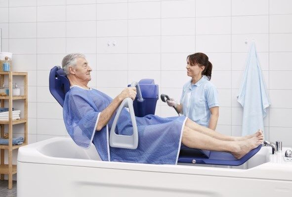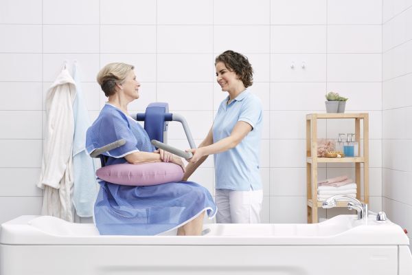 Durch die Kombinationsmöglichkeit der Badelösungen mit unterschiedlichen Mobilitäts- und Hebehilfen können Bewohner und Patienten vom Bett oder Rollstuhl in nur einem Arbeitsgang bequem in eine Badewanne und wieder zurück bewegt werden. Für die Bedienung des Badelifter-Sortiment ist nur eine einzelne Pflegekraft nötig: das manuelle Anheben entfällt, gleichzeitig sind weniger Transfers erforderlich.
