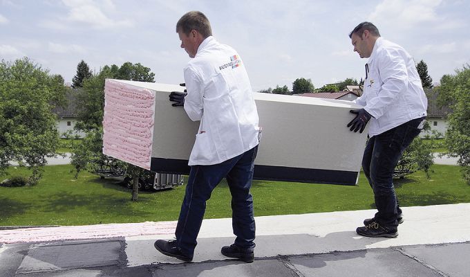 Zeit- und Materialaufwand sind bei Bauprojekten stets ein wesentlicher Entscheidungsfaktor für Planer, Architekten und Bauherren. Genau hier liegen die Vorteile des Austrotherm Attikaelementes, das sich gleichermaßen für Warm- und Umkehrdächer bzw. Neubauten und Sanierungen eignet. Mit diesem innovativen Produkt lassen sich statisch nicht beanspruchte Attiken einfach und kostengünstig ausführen. Die Fertigteilelemente ersetzen die gängigen, teuren und aufwendigen Betonschalungen, die noch durch zusätzliche Dämmelemente ergänzt werden müssen.
