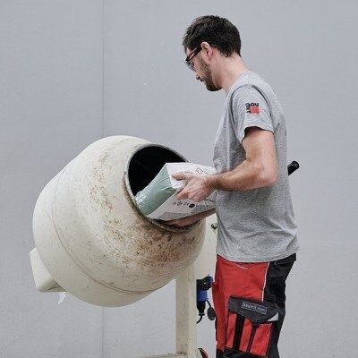 Betonieren mit ALL IN Technologie bedeutet: Den Beton samt dem Sack in die Mischmaschine und los geht’s. Das heißt weniger Staub und Verpackung entsorgen fällt auch weg. Baumit ALL IN Beton ist eine weitere Pionierleistung, mit der sich Baumit als Technologievorreiter beweist. Denn Verpackungen, die sich selbst auflösen und auf diese Weise Teil des Produktes werden, gibt es noch nicht im Baustoffbereich.