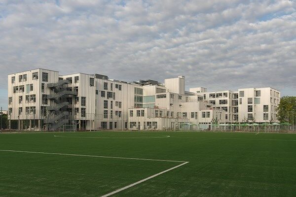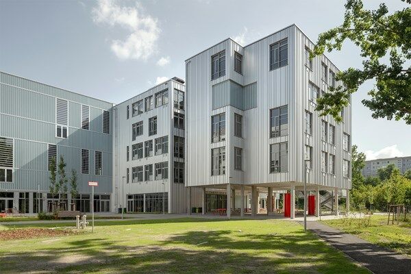 Für das Schulgebäude wurde das innovative Compartment-Modell angewandt, bei dem die Klassenräume zu funktionalen Einheiten zusammengefasst werden. Die flexible Raumgestaltung schafft ein dynamisches Lernumfeld, das gleichzeitig als Treffpunkt und Ort des Austauschs dient.