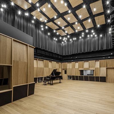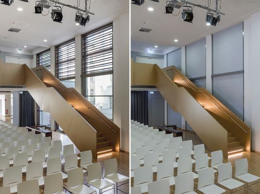 Akustik- und Laser-Systeme aus technischen Geweben als Rollos, Vorhänge, Stellwände oder Flächenpaneele für Wand oder Decke ermöglichen individuelle Lösungen zur Verbesserung der Raumakustik oder zum Schutz vor Laserstrahlen.