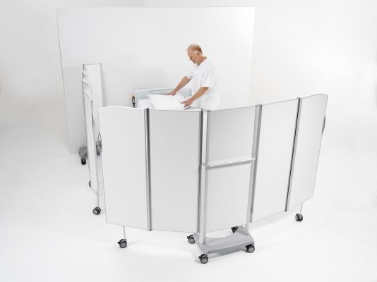 Das System basiert auf einem modularen Aufbau mit mehr als 4000 Kombinationsmöglichkeiten. Dadurch lassen sich Räume effizient strukturieren – von temporären Abtrennungen bis zu dauerhaften Lösungen.