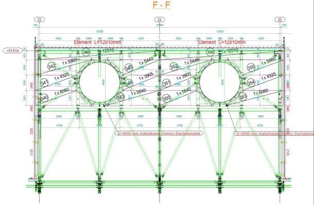 Besonders entscheidend war dabei die schallschutztechnische Leistung. Die ursprünglich geplanten Sandwichpaneele konnten die geforderten Schalldämmwerte nicht erfüllen. DOMICO überzeugte mit Element-Systemen, die Schalldämmmaße bis zu Rw 58 dB erreichen – durchdringungsfrei befestigt und mit hohem Vorfertigungsgrad. Prüfungen an unabhängigen Instituten bestätigten die exzellenten akustischen Eigenschaften des DOMICO Element-Dachs mit Domitec®-Eindeckung sowie der Planum®-Fassade.