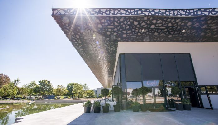 Bei der Planung legten die TEAM M Architekten aus Linz besonderen Wert auf das Corporate Branding. Durch ein spinnennetzartiges Gitterwerk sollte ein symbolischer Bezug zum Namen des Kultur- und Veranstaltungszentrums „Spinnerei“ entstehen. DOMICO nahm diese Herausforderung gerne an und entwickelte gemeinsam mit den Architekten ein neues Perforierungssystem, mit dem es möglich ist, Bilder, Logos oder Schriftzüge in die bewährte Planum-Fassade zu projizieren.