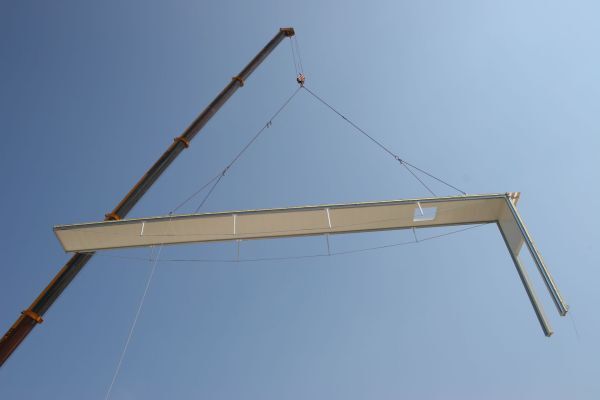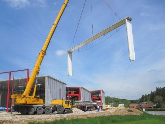 Die Element-Halle wird projektbezogen, individuell und maßgenau in Länge, Breite und Höhe mit allen vorgegebenen Öffnungen für Tore, Türen und Fenster hergestellt. Das Hallenelement entsteht durch das Zusammenfügen eines Dachelementes mit zwei Wandelemente (mit Gelenken) - perfekt für die einfache Montage. Ein Streifenfundament ist als Unterbau der Element-Halle absolut ausreichend. Als Oberschale bzw. Außenschale kommen standardmäßig die bewährten Domitec-Dachprofile und Planum-Fassadenprofile zum Einsatz.