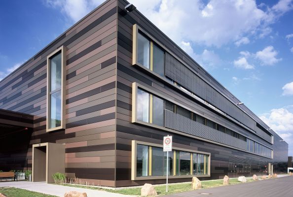 Die seitlich geschlossenen Planum-Profile gibt es in Deckbreiten von 200 bis 800 mm – ein großer wirtschaftlicher Vorteil, denn in der projektbezogenen Planung kann durch die variablen Deckbreiten die Gliederung des Baukörpers optimal gelöst werden, wodurch aufwändige Schneidarbeiten bei der Montage entfallen. Die durchdringungsfreie, verdeckte Befestigung erfolgt bei Planum über Modulleisten. Diese flexible Einhängevorrichtung garantiert den bauphysikalisch richtigen Aufbau mit den erforderlichen freien Hinterlüftungsquerschnitten. Zusätzlich garantiert diese Befestigungsart eine sichere Verankerung gegen Windsog bzw. Winddruck.