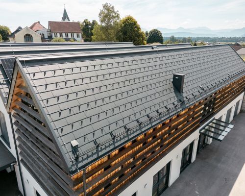 Ein besonderes Augenmerk lag beim Bau auf Sicherheit und Langlebigkeit – und damit auf der Wahl des Daches. Eingesetzt wurden FIGO Dachplatten aus Stahl, die mit der Hagelwiderstandsklasse HW5 den höchsten Standard erfüllen. Sie trotzen extremen Wetterlagen wie Regen, Schnee und Hagel und sorgen so für dauerhaften Schutz. Für die Gemeinde ist das nicht nur eine bauliche Lösung, sondern ein klares Bekenntnis: Den Kindern soll ein sicheres, beständiges Umfeld geboten werden, in dem sie unbeschwert lernen und aufwachsen können.