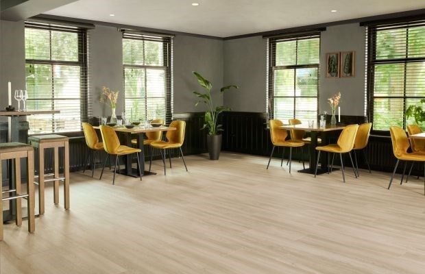 Mit Allura Click Flexcore vergrößert Forbo sein Loose-Lay-Portfolio. Durch eine spezielle Trägerplatte mit stabilem aber flexiblem Kern können Fugen oder Risse im Unterboden dauerhaft kaschiert werden – bei gleichzeitiger Verringerung von Vorbereitungs- und Ausfallzeiten. Eine hohe Dimensionsstabilität sorgt für weniger Wachsen und Schrumpfen bei Temperaturschwankungen. So lassen sich auch größere Flächen ohne Dehnfuge und mit geringeren Randabstände verlegen. Weiterer Vorteil dieser hochwertigen Loose-Lay-Variante: äußerst robuste und entriegelungssichere Klick-Verbindungen. Zudem ist der Boden für Bereiche mit Stuhlrollen geeignet.