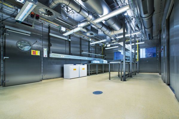 Der dekontaminierbare Vinylboden bietet ohne den Einsatz flüchtiger Antistatika lebenslang eine konstante Leitfähigkeit, unabhängig von Luftfeuchtigkeit und Temperatur.