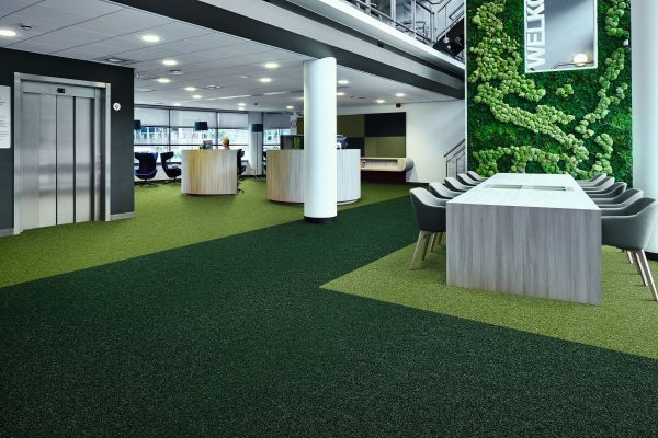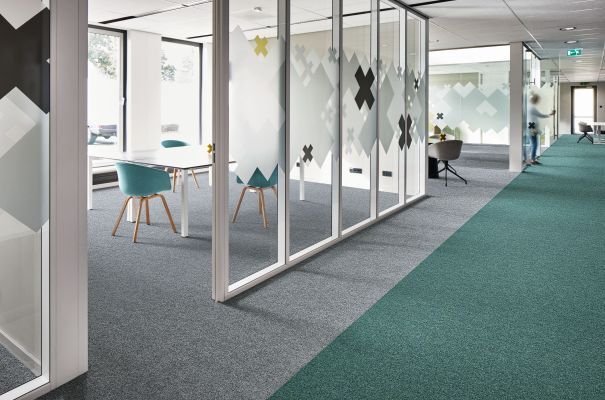 Die vielseitig einsetzbaren Nadelvliesbeläge punkten mit besten Gebrauchseigenschaften und kommen daher bevorzugt in Verwaltungsbereichen und Büroräumen zum Einsatz. Sie stellen eine kostengünstige Alternative zu herkömmlichen Teppichböden in frequentierten Räumen dar, in denen nicht auf textile Optik verzichtet werden möchte. Dank Vollbadimprägnierung und Anti-Schmutzausrüstung erfüllt Forbo Nadelvlies alle Anforderungen im Objektbereich.