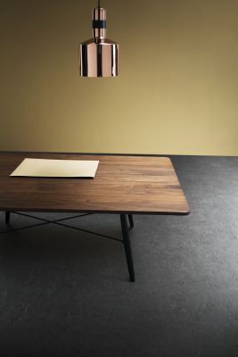 Durch Prägung erhält Marmoleum slate eine neue Struktur mit plastischer 3D-Wirkung und kombiniert die zeitlose Optik von Schiefer mit der besonderen Materialität eines elastischen Belages in fünf Farbstellungen.