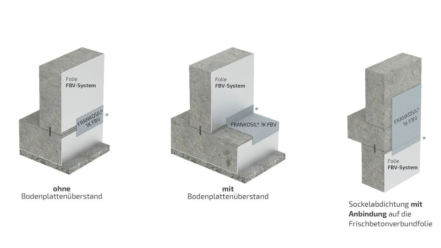 Auf FPO, PVC, Bitumen oder ähnlichem Material basierende Frischbetonverbundfolien zählen zu der neuesten Generation der Bauwerksabdichtung. Besonders bei kritischen Übergängen wie von der Wand zur Bodenplatte oder bei Sockelabdichtungen kann es zu Problemen kommen.