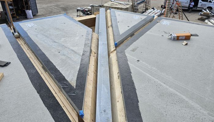Besonders hervorzuheben ist der Schubverbund über Kerven, ergänzt durch Abhebe-Sicherungsschrauben, die eine hohe Tragfähigkeit bei minimaler Aufbauhöhe ermöglichen. Die Elemente wurden werkseitig mit einem Voranstrich zur Fugenabdichtung versehen und erlauben eine unterstellungsfreie Montage mit Spannweiten bis zu 7,00 m.