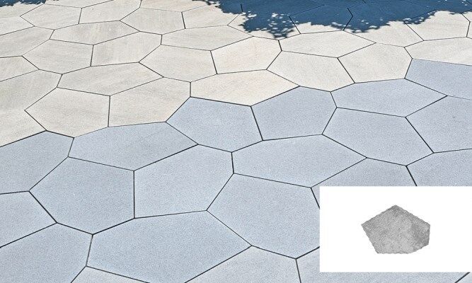 Mit Kursiva VG4 60 x 26,8 x 8 cm und Linea VG4 Rhomboid 60 x 40 x 16 cm bieten Friedl Steinwerke befahrbare Platten in Parallelogrammform an. Parello29 ist das begehbare Gegenstück zu Kursiva VG4. Mit Linea VG4 Trapez 60 x 40 x 16 cm ist eine Lkw-befahrbare Platte in Form eines rechtwinkeligen Trapezes verfügbar. Alle diese Platten ermöglichen besondere Verlegemuster. Die runden Trittplatten Spot mit den Durchmessern 40 cm, 60 cm und 80 cm laden zum kreativen Gestalten von Wegen ein.