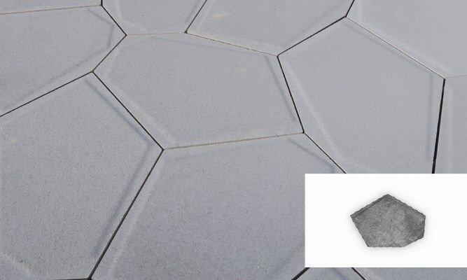 Die unregelmäßige Sechseckplatte Kumo VG4 erzeugt mit ihren unterschiedlich langen Seiten spannende asymmetrische Fugenverläufe. Sie ist scharfkantig und bei einer Größe von 59 x 41,3 cm und 8 cm Stärke Pkw-befahrbar bis 3,5 t. Eine Abwandlung dieser Platte ist die Kumo Style VG4, die ein erhabenes Polygon-Relief ziert. Dies sorgt für eine besondere Optik auf der Fläche.