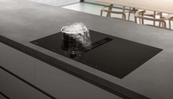 Das neue Kochfeld des Luxus-Kücheneinbaugeräteherstellers Gaggenau besticht durch ein integriertes Lüftungssystem, das Flexibilität, Leistung und dezentes Design vereint. Die vier auf 80 cm Breite verteilten Kochzonen können jeweils zu zwei größeren zusammengeschaltet werden. Die ins Kochfeld integrierte, leise und doch effektive Lüftung kann wahlweise mit Um- oder Abluft, die im Automatikbetrieb selbst die passende Leistungsstufe wählt, betrieben werden.