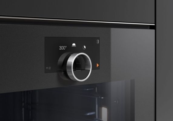 Bei beiden Serien dient der faszinierende, aus massivem Edelstahl gefräste, scheinbar schwebende Ring als einziges greifbares Element auf einer ansonsten durchgängigen Oberfläche. Das Display bleibt verborgen, bis es aktiviert wird. Beide Serien umfassen Backöfen, Dampfbacköfen, Mikrowellen-Backöfen, Kaffee-Vollautomaten, Wärme- und Vakuumierschubladen. Es vereint sie die Kerntechnologie sowie der Fokus auf Handwerkskunst. Der Innenraum mit der typischen kobaltblauen Emaille wirkt aufgeräumt, da der Hochleistungsflächengrill unsichtbar integriert ist.