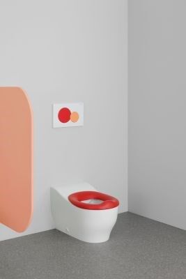 Die neuen Rimfree WC-Keramiken sind in drei Höhen verfügbar (24 cm, 30 cm und 35 cm) und bieten Installationsmöglichkeiten an speziell entwickelten Duofix Elementen für Bambini WCs. Diese ermöglichen die Anpassung der Betätigungsplattenhöhe an die Körpergröße von Kindern. Die Betätigungsplatten sind, farblich auf die Armaturen und die WC-Deckel abgestimmt, in den Kombinationen Karminrot/Orange, Ozeanblau/Hellblau sowie Waldgrün/Hellgrün erhältlich.
