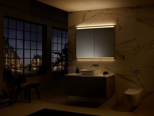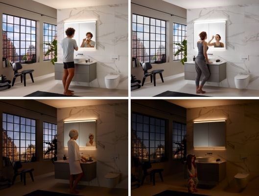 Beim neuen ONE Spiegelschrank lässt sich dank neu entwickeltem, integriertem Lichtkonzept Comfort Light die Beleuchtung perfekt auf die jeweilige Anforderung - beispielsweise nach Tageszeit - anpassen.