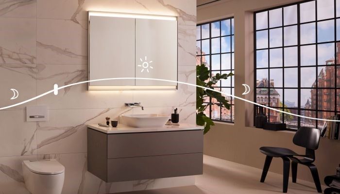 Über eine DALI-Schnittstelle (Digital Addressable Lighting Interface) können die im Geberit ONE Spiegelschrank verbauten LED-Lichtmodule zudem in ein Smart-Home-Lichtkonzept eingebunden werden.