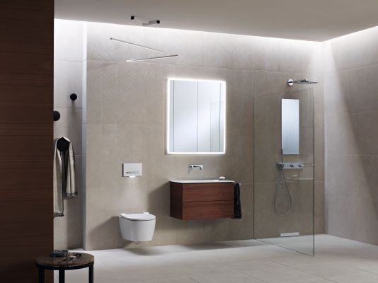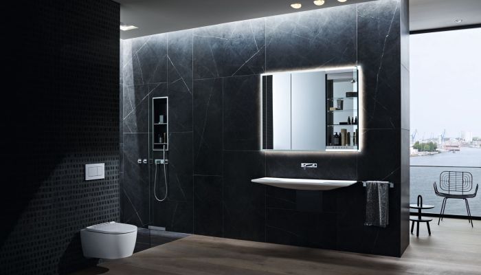 Die Serie Geberit ONE bietet voll integrierte Lösungen für Dusche, Waschplatz und WC. Das System, welches Elemente sowohl vor als auch hinter der Wand bietet, besticht durch smarte Kombinationen der Elemente.