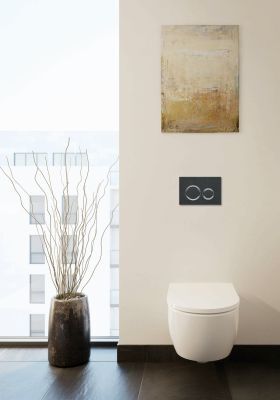 Eine weitere Neuheit aus dem Hause Geberit ist die Bestätigungsplatte Sigma21. Die eleganten Spültasten für den Premium-Bereich bringen zeitloses Design ins Badezimmer. Mit runden Formen und hochwertigem Oberflächenmaterial werden sie von einem reinen Funktionsobjekt zum einzigartigen Blickfänger. Entworfen wurde Sigma21 von Produktdesigner Christoph Behling, der vor allem durch seine Arbeit für den Uhrenhersteller TAG bekannt wurde. Durch eine Kombination aus verschiedenen Materialien, wie Zinkdruckguss und Glas oder Zinkdruckguss und Schiefer Naturstein entsteht eine klassische Eleganz, die formschöne Akzente im Badezimmer setzt. Sigma21 ist dabei in den Farben Schwarz, Weiß, Sand und Mustang Schiefer erhältlich.
