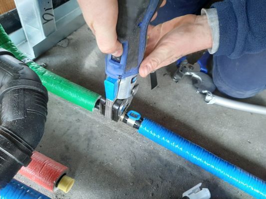 Für die Haustechnik zeichnet Firma Wonisch Installationen aus Graz verantwortlich. Um das Projekt an der Mur gleich im richtigen „Flow“ umzusetzen, entschied sich Projektleiter Martin Skamletz für das neue Versorgungssystem von Geberit. Geberit FlowFit überzeugt mit fließend einfacher Verarbeitung, es benötigt dank der innovativen lateralen Verpressung nur zwei Pressbacken für acht Dimensionen. Das durchflussoptimierte Versorgungssystem kann zudem mit kleineren Durchmessern geplant werden und sorgt so für mehr Wirtschaftlichkeit und schnellere Verarbeitung.