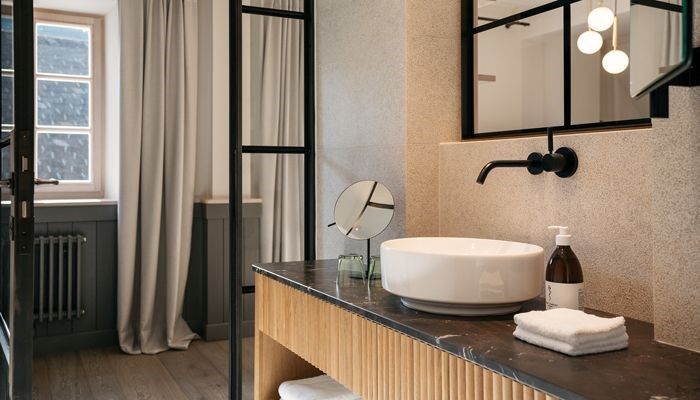 2019 entdeckten die beiden Architekten, Unternehmer und Visionäre Joachim Mayr & Heinz Glatzl ein verstecktes Baujuwel in Lunz am See und erkannten sein Potential für eine Revitalisierung. Gemeinsam mit vielen Partnern ihrer Kooperative für Handwerk, Architektur und Design, dem „Formdepot“, machten sie sich daran, das Gebäude aus dem 16. Jahrhundert in ihre persönliche Vision eines Lieblingsortes zu verwandeln. Für modernen Komfort in den Gästebädern und den Sanitärbereichen sorgen Geberit Produkte vor und hinter der Wand.