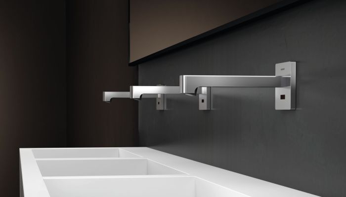 Das innovative Geberit Armaturensystem ist ideal für öffentliche und halböffentliche Räume. Die elektrischen Waschtischarmaturen mit berührungslosem Infrarotsensor überzeugen durch elegantes Design und hervorragende Belastbarkeit. Durch die Anbringung sämtlicher Funktionsteile unter dem Waschtisch bleibt die Elektronik auch bei konstanter Nutzung vor Nässe und andere Schäden geschützt. So kann die berührungslose Technologie auch in vielfrequentierten Gebäuden wie Hotelanlagen, Einkaufszentren oder Flughäfen problemlos angebracht werden.
