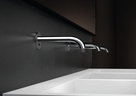 Das Armaturensystem von Geberit beweist, dass elektronische Waschtischarmaturen durchaus schlank, formschön und dennoch sehr robust sein können. Zudem lassen sie einfach sowohl in die Wand, als auch in den Waschtisch einbauen.