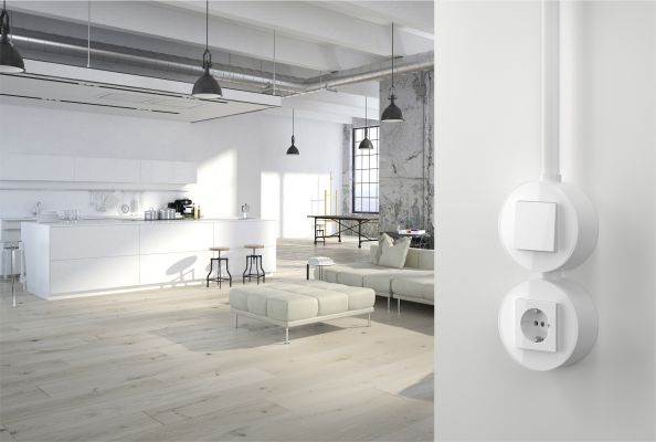 Egal ob Aufputz- oder Unterputzinstallation, Gira Studio zieht die Blicke auf sich. Insbesondere die bewusst als Sichtinstallation konzipierte Aufputzvariante, die sich für Nachrüstungen anbietet: da die Leitungen und Gehäuse auf der Wand liegen, kann sie schnell und sauber ausgeführt werden.