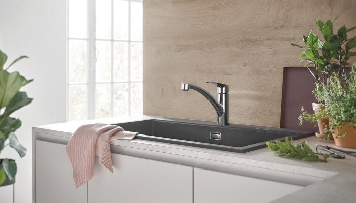 Die Eurosmart S-Size Armatur und die Eurosmart Kitchen Armatur zeichnen sich dadurch aus, dass sie mit der Absicht entworfen und hergestellt werden, ihre Bestandteile am Ende ihrer Lebensdauer zur Herstellung neuer Produkte zu verwenden. Darüber hinaus beeindrucken sie durch weitere nachhaltige Lösungen: Durch den Einsatz der SilkMove ES Technologie wird beispielsweise der unnötige Verbrauch von heißem Wasser verhindert, indem sie bei mittlerer Hebelstellung der Armatur nur kaltes Wasser liefert. Zudem sind die GROHE Eurosmart Armaturen mit einem Mousseur ausgestattet, der den Wasserverbrauch zusätzlich reduziert – gleichzeitig das Wasser jedoch auch mit Luft anreichert und so voluminöser macht. Diese Kombination gepaart mit einem zeitlosen Design machen die Cradle to Cradle Certified® Eurosmart Armaturen zu optimalen Nachhaltigkeitspionieren in Küche und Bad.