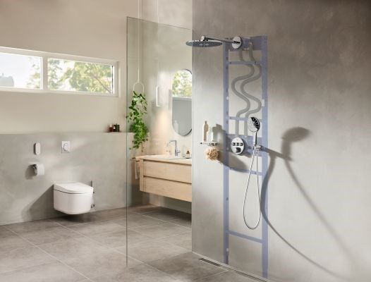 Der zunehmende Trend zu Unterputz-Duschsystemen stellt Planer:innen vor eine Herausforderung: Der Einbau solcher Lösungen ist komplex und zeitaufwändig. Der Effizienzdruck bei der Planung und Umsetzung von Projekten wird jedoch immer größer, nicht zuletzt aufgrund des aktuellen Fachkräftemangels. GROHE trägt dieser Entwicklung mit einem neuen Produkt speziell für Unterputz-Duschen Rechnung: dem GROHE Rapido Duschrahmen. Dank vormontierter Komponenten wie Mischwasserleitungen und Unterputzelementen sowie einer werkseitigen Dichtigkeitsprüfung erfolgt die Installation durch eine:n Monteur:in in nur wenigen Schritten. Das vereinfacht die Montage und verkürzt die Installationszeit.