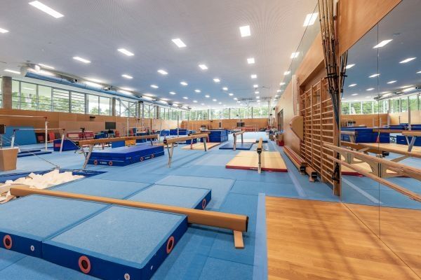 Herzstück ist die Ballsporthalle, die sich mit fixen und mobilen Tribünen schnell von Trainings- auf Wettkampfbetrieb umstellen lässt und bis zu 3.000 Zuschauer*innen fasst. Ergänzt wird sie durch eine Turn- und eine Leichtathletikhalle, so dass über 13.000 m² Sportflächen zur Verfügung stehen: ca. 6.500 m² Leichtathletik, 3.000 m² Ballsport, 1.500 m² Turnen plus multifunktionale Räume – eine Vervierfachung des bisherigen Angebots.