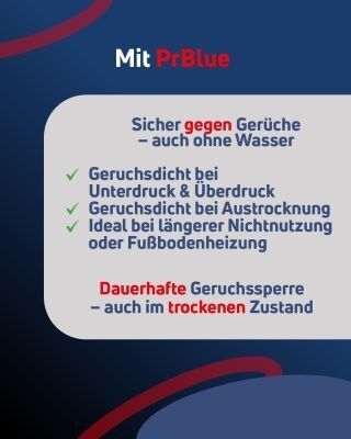 Ein technologisches Highlight der Weiterentwicklung ist der Hybrid-Geruchsverschluss Primus blue. Dieser bietet maximale Sicherheit, da er auch nach einer Austrocknung zuverlässig geruchsdicht bleibt und zudem über eine Rückflusssicherung verfügt. Für Sanierungsprojekte mit geringen Aufbauhöhen steht die flache Variante HL53FPrblue zur Verfügung, die mit einer Bauhöhe von lediglich 65 mm überzeugt. Trotz der flachen Bauweise bleibt der Geruchsverschluss herausnehmbar, was eine einfache Reinigung sowie den freien Zugang zur Rohrleitung sicherstellt – ein wesentlicher Vorteil bei flachen Aufbauten, um Verstopfungen vorzubeugen.