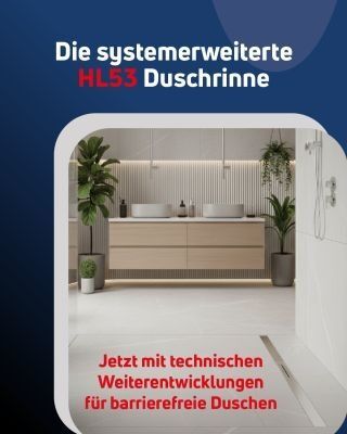 Das Duschrinnensystem HL53 präsentiert sich in einer technisch optimierten Neuauflage, die gezielt an moderne bauliche Anforderungen angepasst wurde. Durch die Integration einer neuen Positionierhilfe wird nun eine exakte Ausrichtung bei der Montage ermöglicht. Für einen zusätzlichen Zeitvorteil auf der Baustelle sorgen die neuen Montagefüße mit Schnellspannsystem, die eine schnelle und präzise Höhenverstellung garantieren.