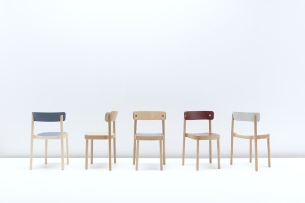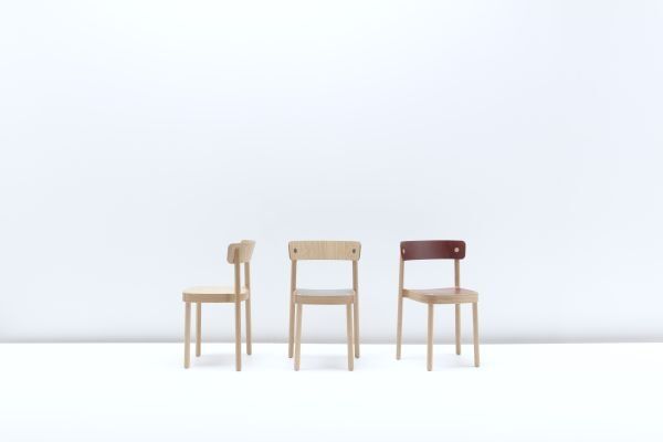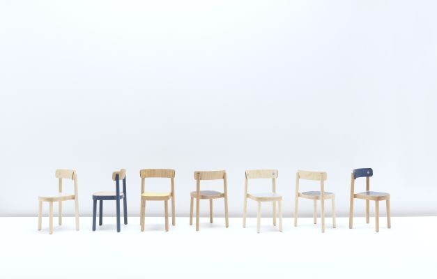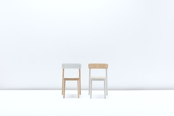 OKKO verfügt über ein Massivholz-Gestell mit Rückenlehne aus formgepressten Zelluloseschichten. Markante, runde Verbindungspunkte dienen als charakteristisches Detail. Für eine besondere, spielerische Note sorgt die eingelassene, farbig abgesetzte Sitzfläche.