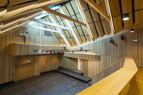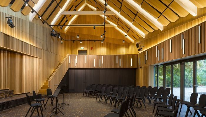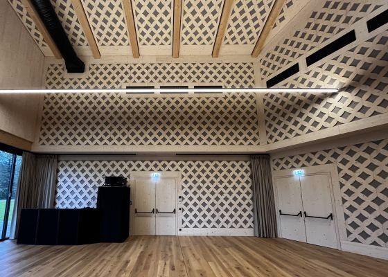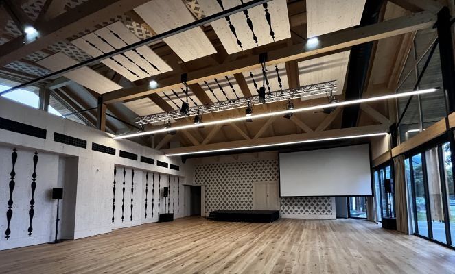 Eröffnet wurde Mitte Oktober '25 auch der neue Veranstaltungssaal in Altaussee (Stmk.). Eingebettet ins Ortszentrum und vor der malerischen Bergkulisse des Loser gelegen, entstand hier ein besonderes Juwel. Traditionelle Stilelemente der Region wurden - neu interpretiert - in Architektur (Aglaja Reicher, LIEBESsinn Architektur) und Innenakustik des Kulturzentrums aufgenommen und auf handwerklich höchstem Niveau in Szene gesetzt. So entstand eine Überleitung vom Gestern ins Morgen ganz ohne Bruchstellen, als wäre es die schlüssige Konsequenz und einzig mögliche Fortführung von Althergebrachtem in modernem Kontext. Hutter Acustix zeichnete für die gesamte raumakustische Gestaltung des Saales verantwortlich.