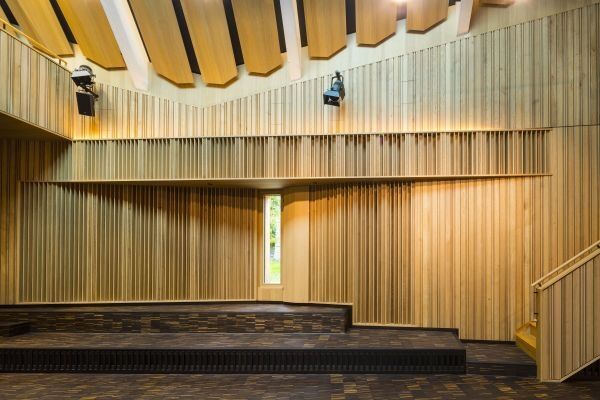 „Mir ging es darum, das sinnliche Erleben für alle - ob Musiker, Vortragende oder Publikum - bis zu diesem phänomenalen Augenblick zu intensivieren, da der Raum hörbar und der Klang sichtbar wird“, sagt Architekt Kraus.