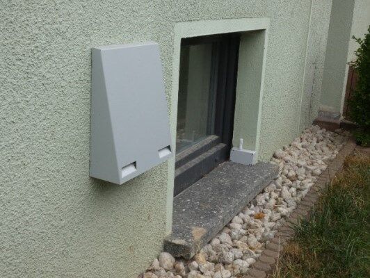 Die effektivste und komfortabelste Lösung, um den Feuchtigkeitsgehalt in der Raumluft gezielt zu regulieren und Feuchteschäden zu vermeiden, ist eine automatische Kellerlüftung. Dezentrale Systeme lassen sich besonders einfach installieren oder nachrüsten. Sie bestehen aus paarweise funktionierenden Lüftungsgeräten in den Außenwänden, wodurch sie ein individuelles Belüften einzelner Räume ermöglichen. Wird das Untergeschoss bewohnt, empfiehlt sich eine Lüftungslösung mit Wärmerückgewinnung, um Heizenergie einzusparen.