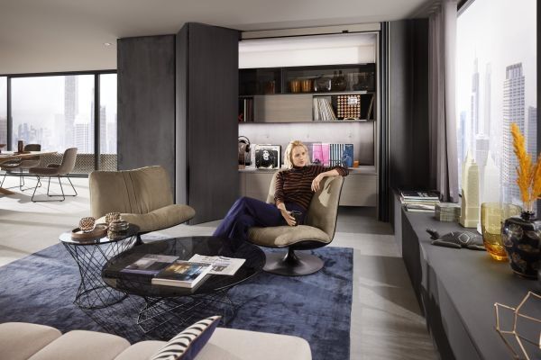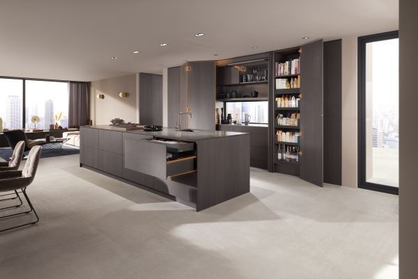 Neu: Das Pocketsystem ist nach dem Modellupdate für Fronthöhen von 1130 bis 2980 mm erhältlich. Der Realisierung weiterer Interior-Ideen wie einer Kaffee- und Teebar umgesetzt als Aufsatzschrank, steht somit nichts im Weg. Auch raumhohe Durchgangslösungen für Ankleide oder Vorratsraum sind umsetzbar.
