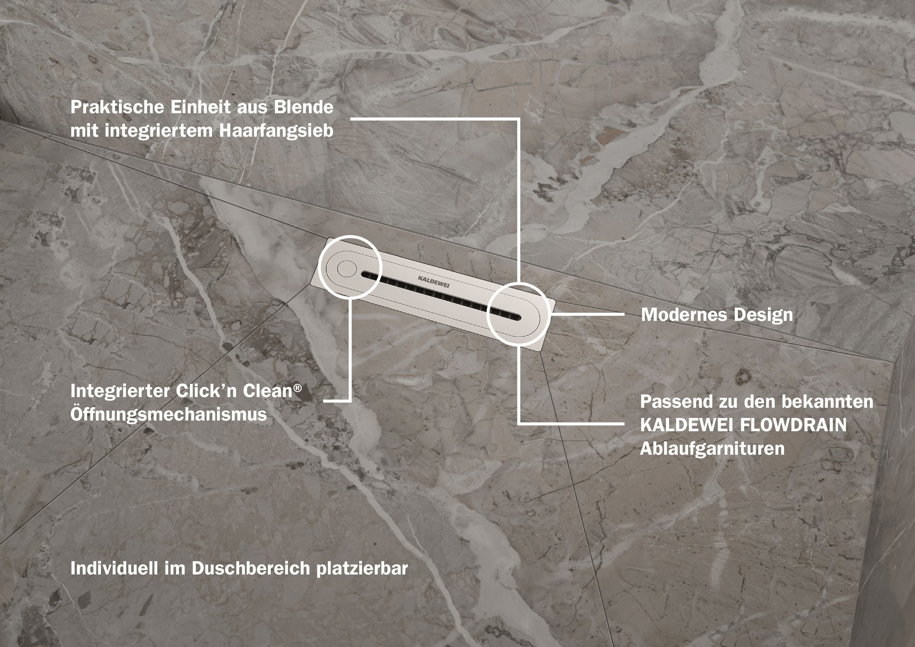 Einfache und schnelle Reinigung mit dem KALDEWEI Click’n Clean Öffnungsmechanismus
