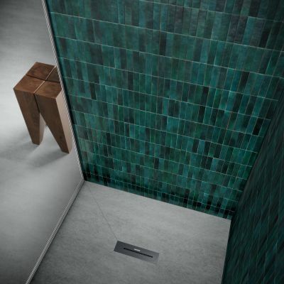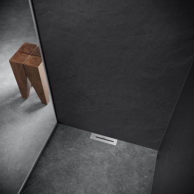 Bodenseitiger Gesamtaufbau (Fliese, Fliesenkleber, Abdichtung) von 11 mm bis 28 mm, auch für fugenlose Böden geeignet